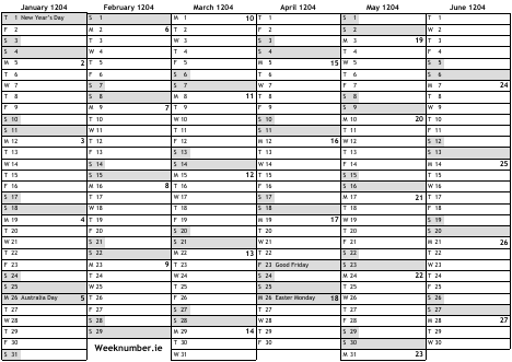 1204 calendar