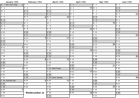 1353 calendar
