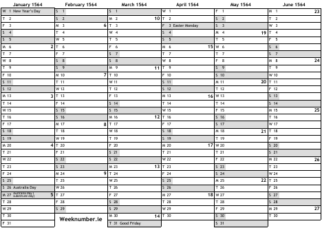 1564 calendar