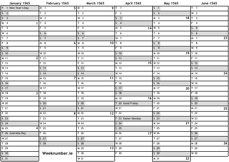 1565 calendar