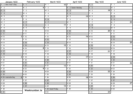 1632 calendar