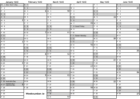 1642 calendar