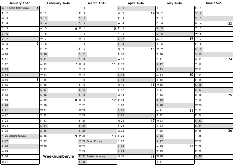 1646 calendar