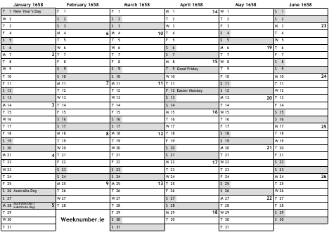 1658 calendar