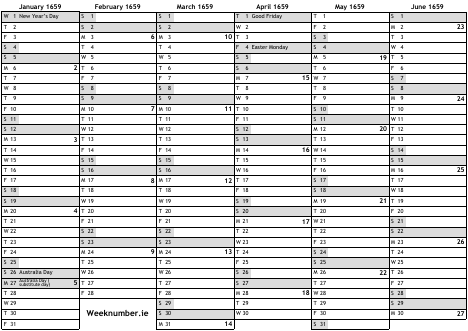1659 calendar