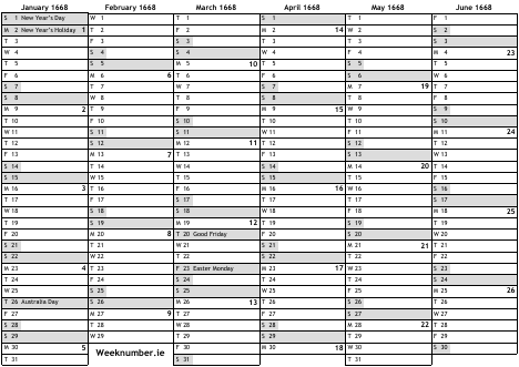 1668 calendar