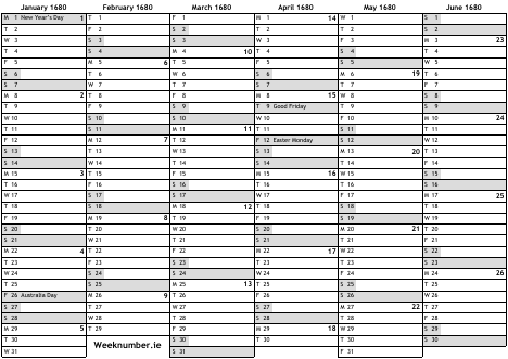 1680 calendar