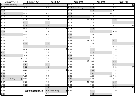 1711 calendar
