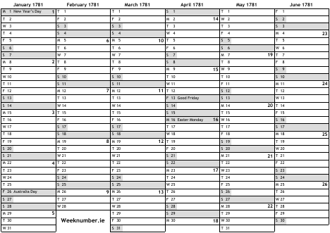 1781 calendar