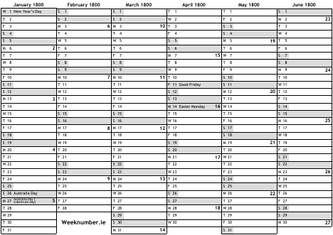 1800 calendar