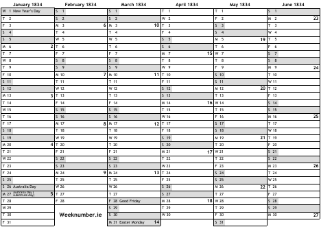 1834 calendar