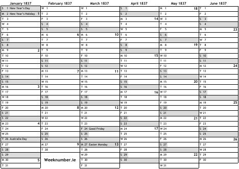 1837 calendar
