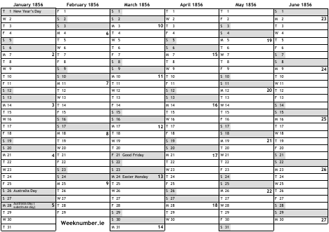 1856 calendar
