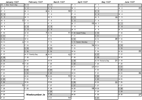 1327 calendar