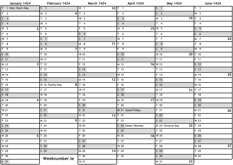 1424 calendar