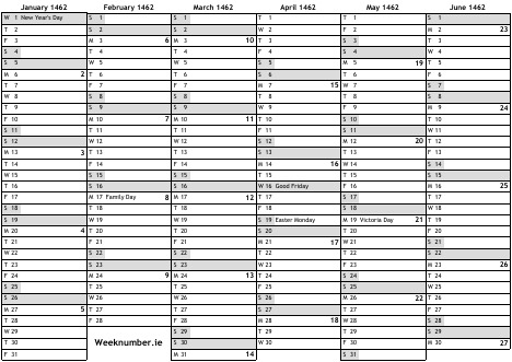 1462 calendar