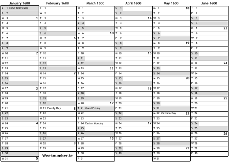 1600 calendar
