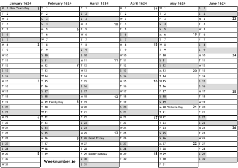 1624 calendar