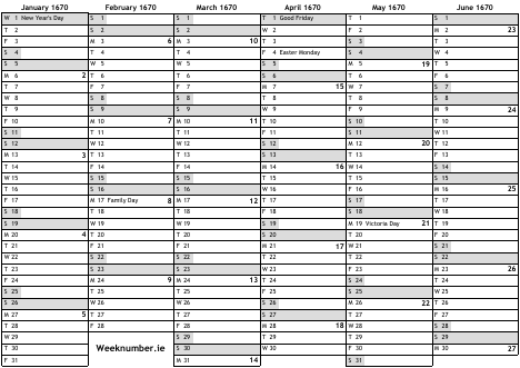 1670 calendar