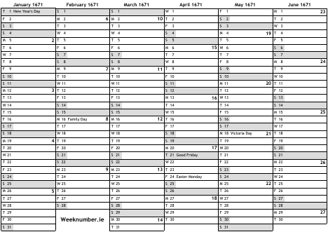 1671 calendar