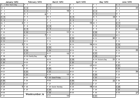 1692 calendar