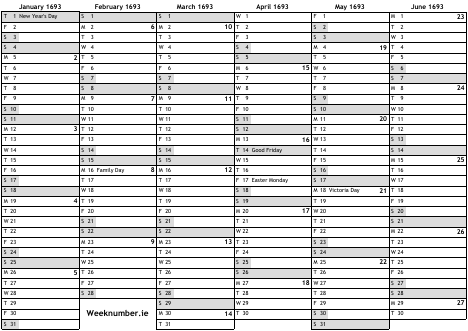 1693 calendar