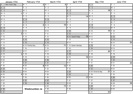 1734 calendar
