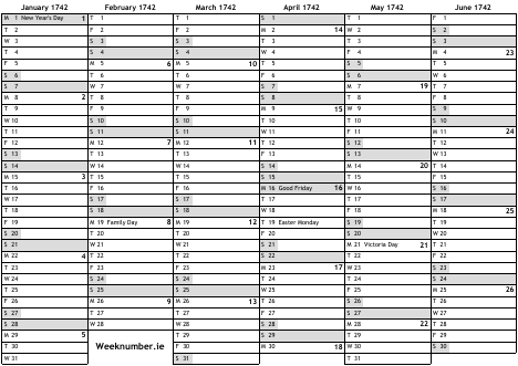 1742 calendar