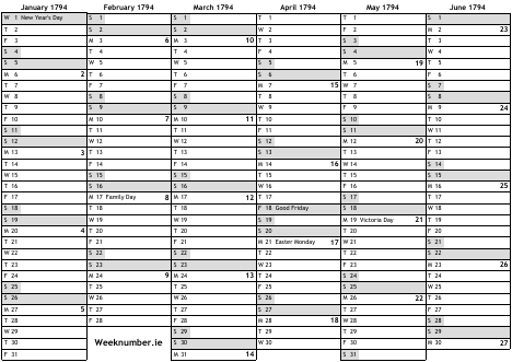 1794 calendar