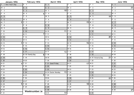 1856 calendar