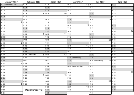 1867 calendar