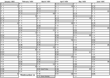 1404 calendar