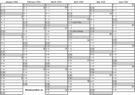1542 calendar