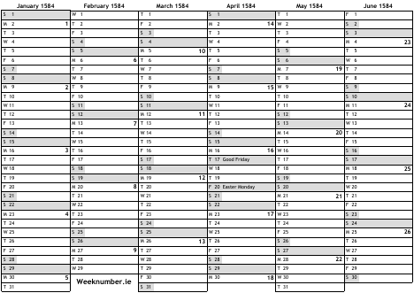 1584 calendar