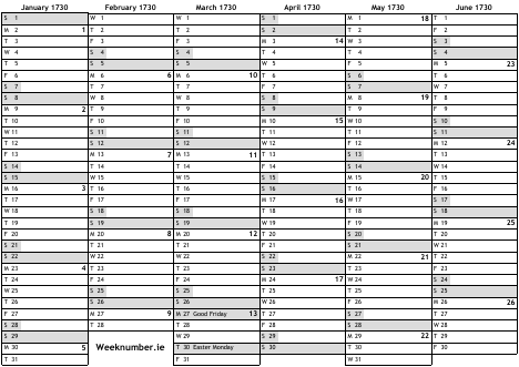 1730 calendar