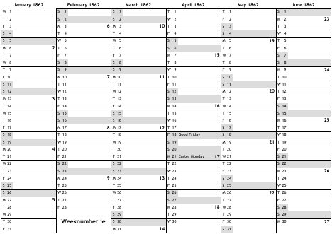 1862 calendar
