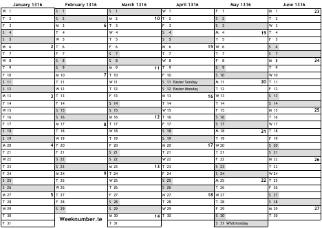 1316 calendar