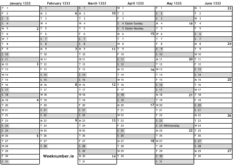 1333 calendar