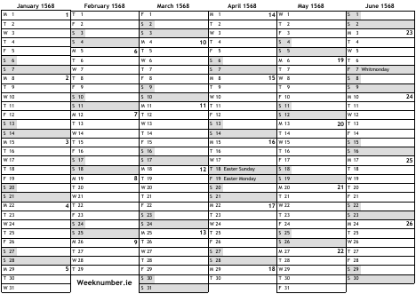 1568 calendar