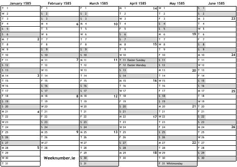 1585 calendar