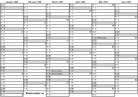 1600 calendar