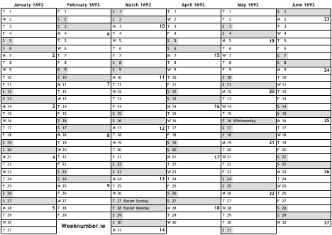 1692 calendar