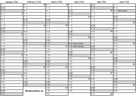 1734 calendar