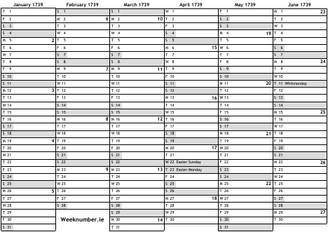 1739 calendar