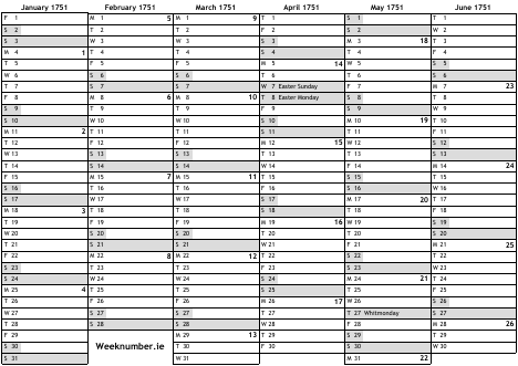 1751 calendar