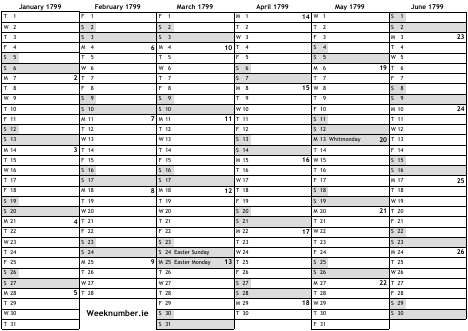 1799 calendar