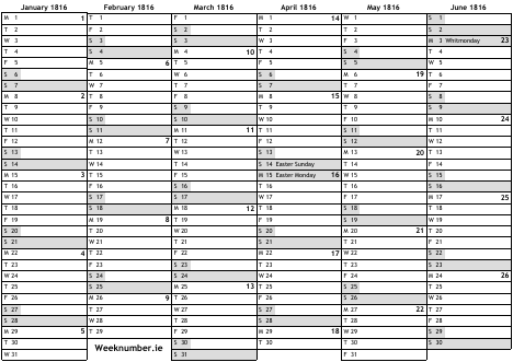 1816 calendar