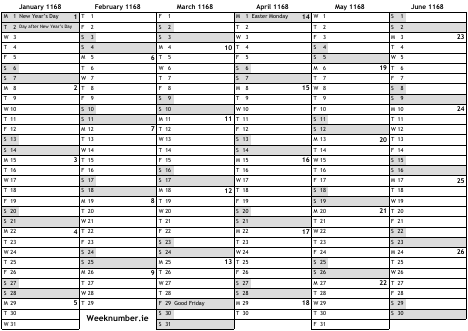 1168 calendar