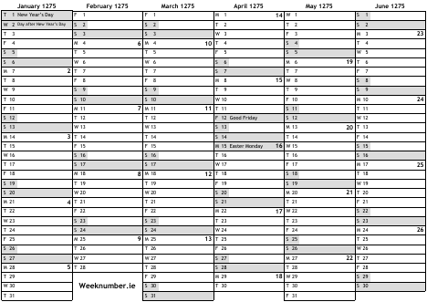 1275 calendar