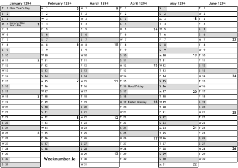 1294 calendar